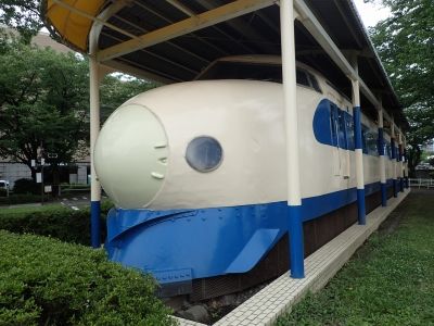 市役所の近くに新幹線公園の愛称で知られている公園があると知り、行ってみました。【新通町(しんどおりちょう)公園】ここの公園内には初代新幹線「0系」が展示されている。 案内板によると、日本で最初に新幹線を展示した公園で、土・日・祭日の10:00~15:00まで新幹線の内部を見学できるようです。 運転室は狭いので、見学したら早めに次の人にかわってください。とのお知らせも。子供達の一番人気の見所ではあると思うが・・・。<新幹線の詳細> 新幹線の他に、 1937年製のJR伊東線伊東駅構内側線で使用していたレールを使ったレールチャイムなどもあり、自由に奏でられるようになっていた。 ミニSL車も毎月月1回:第2日曜日に運行されているようです。小さい子が喜びそうではあるが、「吉原宿」という繁華街に近いので混んでそうですね。 おそらくミニSL車に乗ったらこんな感じの風景を楽しめる事でしょう。園内に展示されているこれは何だろう?鉄道に関する物だとは思うが・・・。説明書きが欲しかった。 SL車の車輪の一部??トイレもおそらく鉄道に関するような外装っになってるように思う。何だかよく判らないが・・・。(^-^; とにかく鉄道マニアが喜びそうな公園である事は確かです。公園の半分が展示と休憩ができるようになっていて、半分はグラウンドで周りをSLが走る様になっています。もちろん、公園なのでブランコなどの遊具もあります。町の中にも駅看板があり、公園をお知らせしている。 何か粋な感じです。が、ん??公園の名前が微妙に違う・・・。「新通町公園」なのに「新通り公園」となっている。まぁ、ご愛敬ということで・・・。(笑)