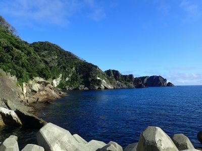 本日宿泊する地へ行く道中、前からちょっと気になってた「伊豆オレンヂセンター」へ。 ランチ時だったので金目鯛と季節やサイト豆腐を使用したヘルシー定食「金目揚げ出し定食」 これが意外にボリュームがあって美味しかったです。「伊豆オレンヂセンター」では、食事をするか、ウルトラ生ジュースを飲んだ方はもれなく「伊豆の踊子美術館」無料券が貰える。はずだったのに、本日は工事中で閉館で入れませんでした。工事はしばらく続くようですが、期間は判りませんでした。 特に観たい訳ではなかったのですが、せっかくだったのに・・・という感じです。まだまだ時間があるのでGEO巡り。日本の渚百選「弓ヶ浜」 ここから神子元へ潜りに行った事を思い出す。 この奥に「タライ岬歩道」途中にある奇岩・奇石のある「逢ヶ浜」へ。 左からとんがった形の中が抜けて穴になった「エビ穴」、「姑岩」潮が満ちてくると群れをなした雀の鳴くような音をたてるといわれている「雀岩」です。 上に続く道があったので行ってみました。タライ岬に続くようです。 途中抜けた場所から見渡す景色。 遠くに神子元島が見えます。(左写真の海奥)そして、ニコちゃんガニに出会いました。(#^.^#) アカテガニというそうです。 名前が判らないのですが、背中に口のようなラインがあって笑った顔に見え、可愛い。動いていたのでボケてますが、何とか撮れてました。海に向かって海上・海中・村内の安全を司る海神さまを祀る「龍権神社」がありました。 南伊豆、堪能しました。 この後、手石という所にある近代土木遺産に指定されている一部レンガ造りの旧トンネル「(旧)弥陀山隧道」に。 レンガと石造りですが、レンガ部分は両出入り口部分だけで真ん中はレンガではありません。大正12年(1923年)築 両出口が海に続くトンネルだからか、カニがいた。ちょろっと立ち寄りばかりでしたが、堪能しました。 マンホールの柄は、近松門左衛門の「国姓翁合戦」の一部を舞にした「小稲の虎舞」と特産品の「伊勢えび」のデザインだそうです。次はいよいよ、本日の宿泊先である場所へ移動です。