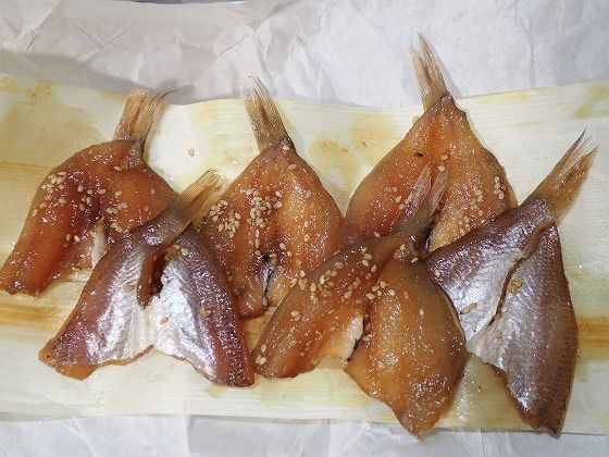 通りがかりに目についた鮮魚店前に切り身が干されていて、名前に「めまる正油」と書いていたので、気になって聞いてみた。 私:「めまる」は「めばる」の事ですか?店主:「目が真ん丸の魚」で「メバル」は身が引き締まってるが、 「めまる」はそれほどでもない。 「シロムツ」っていうかなぁ~。身体はグレーで・・・。と説明して下さり、「焼く」より「衣をつけて天ぷらにして揚げたら美味しい」らしい。小ぶりだが、1枚30円と安いので、買ってみた。背びれとって捌いて、醤油に漬けて干す。しかも、小さければ小さいほど面倒くさい。工程を考えたら安すぎるぐらい。で、早速天ぷらにしてみました。 もともと下味がついてるのでそのまま食べれる上、いい味付け。めっちゃ美味しい。 家族もめっちゃ気に入ってました。いつもながら、違うルートを通るたびに新たな発見に出会えるのが嬉しい。また買いに行こうっと。そして、実家が製茶業を営んでいる取引先の方から、今年の新茶(非売品)をいただいた。非売品なので、裏面には製造者等の印字はありません。 今頃ですが、実は新茶の季節からず~っとお会いするまで置いといて下さってた。以前、川根方面へ行った際に買った家庭用のお茶が美味しかったので、これはもっと美味しいはず。来年は自分ちの分と、実家用に買ってあげようっと。