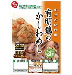 最近、国産・無添加にこだわり、食生活の見直しを始めています。もともと、野菜は手作りものが多かったが、調味料などはあまり気にしてなかったが、添加物によるアレルギー体質の方が増えている現代人。かくいう私も、花粉症アレルギーの持ち主で、かれこれン十年のお付き合い。富士市に引っ越してからは、工場やトラックが多いせいか、花粉症に加え、目のかゆみが年中。となってしまった。(*_*)で、食生活の改善を、肩ひじ張らずにできるだけ気を付けるように心掛け始めました。できる限り国産。余分な添加物が入ってないか、遺伝子組み換えでないか、等々をチェック。秋ですね。炊き込みご飯の素がスーパーの店頭で見かけるようになりました。そんな中、隠れるように陳列されていた炊き込みタイプではなく「まぜご飯の素」を見つけた。『有明鶏のかしわめし(2合用)』 真夏の暑い中、台所に長時間いなくても簡単。混ぜるだけ。しかも、佐賀県産若鶏「有明鶏」、国産ごぼう・人参使用。無添加。 遺伝子組み換え、アミノ酸等、Ph調整剤、香料、などの添加物が本当に入ってないようだ。 会社の「厳選素材」や「無添加調理」でも詳しく説明されており、これみたら、個人的には 結構安心できる。で、早速2合のお米に、人参少し、うす揚げ、銀杏 を入れて「炊き込み」モードで炊飯。出来上がったご飯に混ぜ混ぜ。5分蒸らすと書いていたが、30分以上蒸した。 めっちゃ美味しい。しかも時短。ゴボウのいい香りにしっかり味付けされた有明鶏とご飯の味の混ざり具合が最高!まるで炊いたみたいな出来具合。美味しくっておかわりしちゃいました。自分で作れば安心だが、食材を沢山買わないといけない=費用も多少かさむ。手間暇を考えると、こんなに手軽で美味しいんなら、またリピ間違いなし超気に入った。 働いてる主婦の方々にもおススメです。