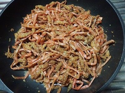 大きなボールに溢れんばかりの量が採れたので、佃煮にしてみました。