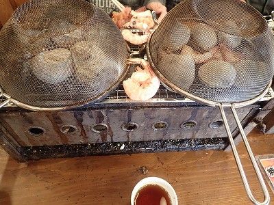 貝は焼ける時に弾けるので、網を被せて焼きます。