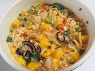 シーフードの四川風かな?と思って食べてましたが、キムチ風味だったんですね。