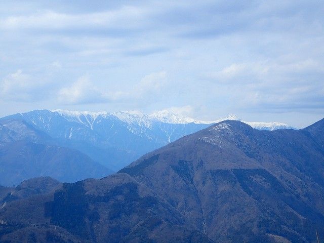 手前の富士見山の奥、白峰(しらね)三山はまだ雪が積もっていました。