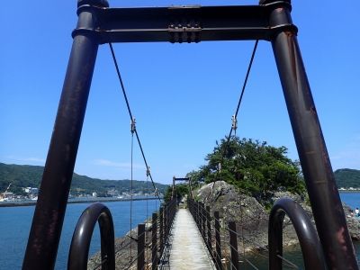 とても小さな島で吊り橋を渡ります。
