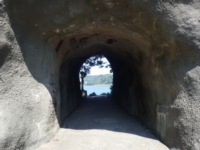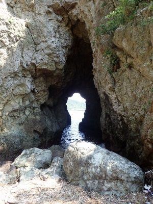 遠くに見える海食洞?に行ってみたが、塗り固めたのかな??