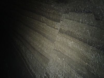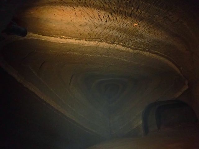 この部屋の地層の真中上部に妙なクボミがありますね。