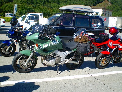 親会社からの急な資料請求をなんとかでっち上げてこれで今週もお仕事終了です。明日は1年分の米の買出しです、とりあえず米さえあればなんとかなりますので、、、午後はのんびり昼寝でもしたいのですが、奥様がどこかに行きたいようですから、簡単には寝かせていただけないのでしょうね、で、今頃なんですが、前回のお泊りツーリングの写真でもアップして手抜きですぅ~。1回目の休憩です、2回目の休憩本栖湖の裏です。箱根付近です。今回のお宿です、今回は久し振りに11台でのツーリングでした。
