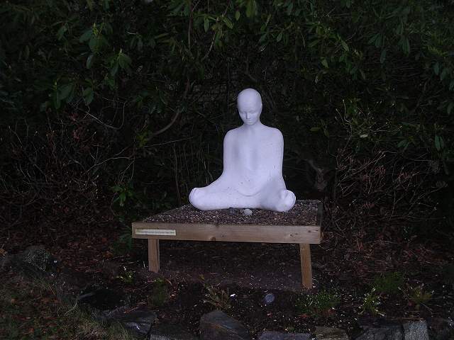クルーニーの庭にはいろんなものがありますね。石のラブチェアだったり、最近できた瞑想者の像だったり…それはそうと、そこここにオーブさんが出ていますね。