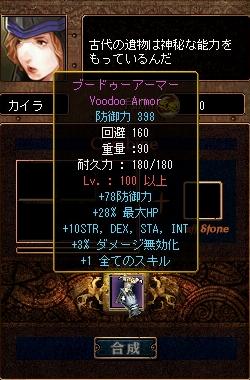 ごきげんよう、朱い玉です。 今日は+5と+4を1個ずつ作って終了。今週中に+8作りたいなぁ。にしても最近INしてもチャットで一文字も入力することなく落ちるって感じで一人で黙々と狩ってます。ギルチャが盛んでログ流れまくってた頃が懐かしいです。ホロリ。 なんだか相変わらず眠すぎで今朝は目覚ましセット時刻から1時間後に起床(;´Д`)おかげで起床から30分で家を出るはめにorz今日はもう少し早く寝ようかな。 でわでわ (つ∀-)ノシ