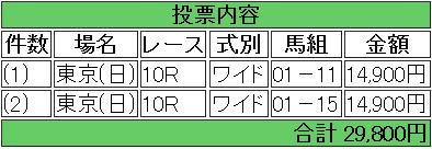 このほかにトーセンから1000円ずつワイド総流ししてる
