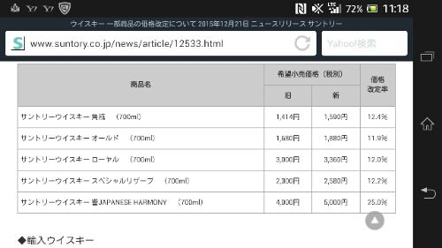 昨年も値上げしてましたが、また値上げするそうです。 響が25%値上げ。以前は12年が4000円台でしたが、ノンエイジが4000円になり、今度は5000円に。山崎より高くなりましたね。 マッカランやバランタインも高くなっております。 角も値上がりしたので、トリスにする店も増えるんでしょうね。トリスは毒ですけど。 俺はニッカのフロム・ザ・バレルが有ればそれでいいです。 【正規品】ニッカ・フロム・ザ・バレル・ニッカウイスキー株式会社・正規代理店輸入品・500ml・51%NIKKA FROM THE BARREL NIKKA WHISKY 500ml 51%