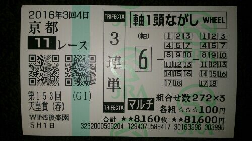 マジックタイム・ルージュバックのワイド チェッキーノ・ビッシュのワイド ディーマジェスティ・サトノダイヤモンドのワイド モーリス・リアルスティールのワイド 10倍×30倍×3倍×3倍くらいにならんかね