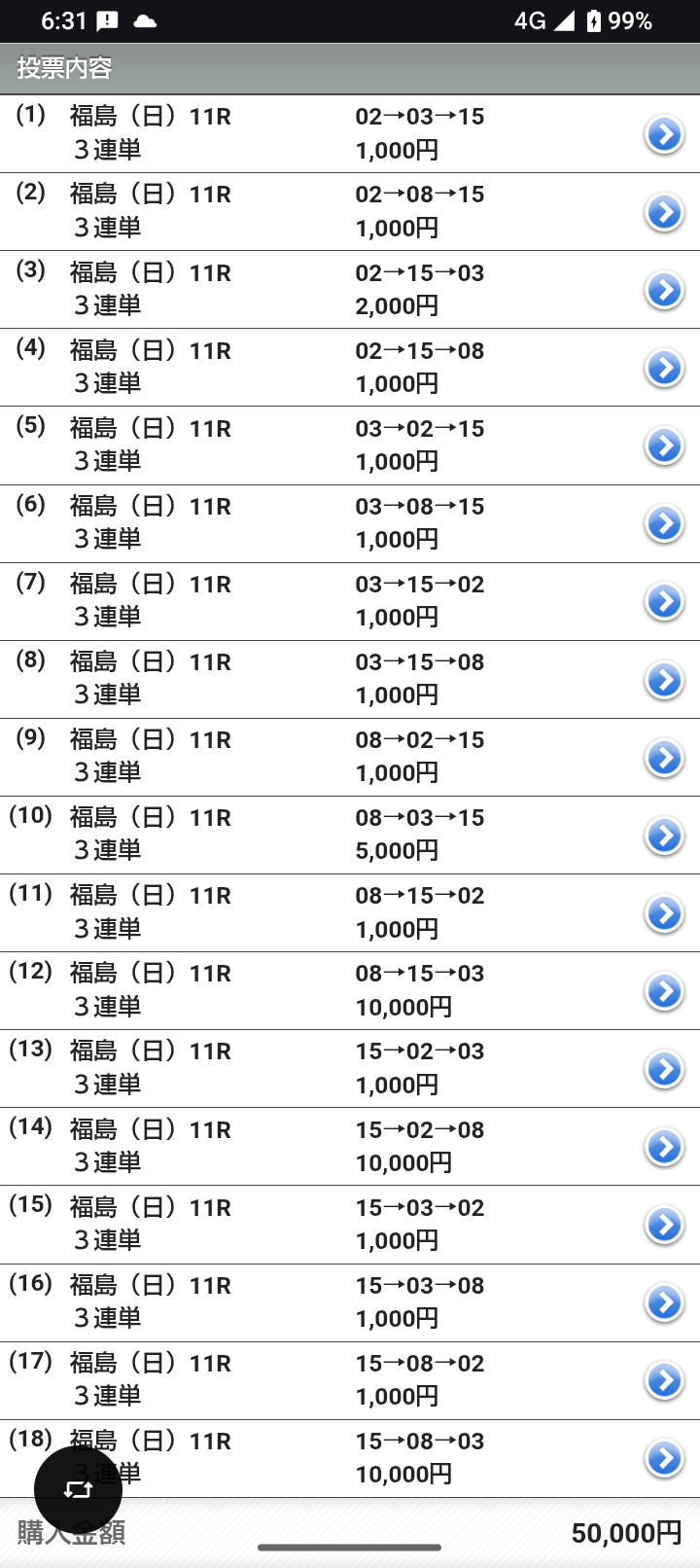 サタデーサンライズから3着固定で総流し