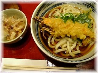 今日は愛姉とディト。というわけで、近くのモール(というか、スーパー??・・・モールっぽいかね、どっちかっつ~と)←どぅでもいい。に行ってきました。父の日のプレゼントを買いに行く、という名目だったのですが、急遽変更。やはし、土日のどっちかに家族でどっかたべにいこうか、という話に。うん。というわけで、ちょっと遅いけど、お昼食べましょうか、ということになり、和食処といいますか、麺屋さんへといってみました。客ナシ。そりゃぁ、3時半ですから、だれもいませんよねwというわけで、頼んでみました。"天ぷらうどん(温)"こんなんでました。"天ぷらうどん"じゃなくね??まぁ、天ぷらだけどさ・・・