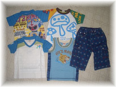 発売日に購入したF.O&BIT'Zの福袋。北海道なので先ほどやっととどきましたいつもネタバレに出遅れますしかたがないけどね。 ★税込★2007秋物FOインター福袋 アニ君、4歳、身長101センチ、体重17キロに、サイズ110とチビ君、間もなく2歳、身長90センチ弱、体重11キロに、サイズ90の2つ購入 みなさん見飽きてると思いますが中身は。。。 こちらは110そして90色までオソロここまでまるっきり同じなのは初めてでも嬉しいですでは嬉しい順に 【2007・秋冬】 Bit'z Tシャツ(かくれんぼ・縁ドット)これはアニ君大喜びめちゃくちゃ気に入ったみたいです【消費税カット!】【2007秋冬物】F.O.KIDSバックロゴ刺繍パンツ(7分丈)お尻がいいね!これもカワイイです好きな色だしとってもあわせやすそうで☆セール☆20%オフ エフオーキッズ 長袖Tシャツ グレーコレ意外とカワイイ果たしてぽっこりおなかのうちの子達に似合うかしら20%オフになってるし~2007'秋物 Bit'z車総柄Tシャツ[b410417]コレも車好きなうちの兄弟たちに人気でした 2007'秋物 F.O.KIDSNATIVE総柄ブーツカットパンツ[r440057]これは自分では買わない柄。。。良いお話があれば、90、110共に交換可能です 全体的にはなかなかではないかな今期物が一枚1000円だもの。。。セールより安いしあたし的には当たりでした 22日10:00からキャンセル分の再販があるみたいですね~内容は今回と同じものだろうけど。第2弾もでるのかなぁ