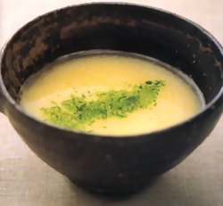 本日は、この料理を知らなきゃ南国の楽しみの半分もしらないね。と威張れてしまう(大げさ)トロピカルな料理をご紹介。●奄美鶏飯約400年前、奄美が琉球王国から薩摩藩政へと支配が移行したとき笠利(奄美大島北部の町)の村人達は、初めて来島する島津の役人をもてなすために昔からお祝いの時、賓客のおもてなしに出されていた「鶏飯」この料理は、別名「殿様料理」と呼ばれるように、材料・調理に手間隙をかけた心のこもった島の代表的な料理です。今では、奄美全体に伝えられ、奄美の名物料理となっています作り方1 お米は炊く30分前に洗って普通に炊く2 鶏ガラをたっぷりの水でアクを 取りながら十分に煮出す3 鶏ガラを取り出し、だし昆布、シイタケ ササミを入れ、Aで味を付ける 3のスープをこす4 シイタケを千切りにして、Bで煮含める5 ササミは細かく裂く6 卵は味を付け、薄焼きにして錦糸卵をつくる7 わけぎは小口切り、みかんの皮、パパイヤの漬け物はみじん切りにする8 炊きたてのご飯を器に盛り、4、5、6、7、きざみのりを彩りよく盛り、 スープをタップリかける材料(5人分)・お米3カップ ・鶏ガラ1羽分 ・だし昆布2枚 ・鶏のササミ6枚・シイタケ8枚 ・卵4個(塩少々) ・わけぎ適量 ・みかんの皮適量・パパイヤの漬け物(又は奈良漬け)適量 ・しょうが適量 ・きざみのり◎A 酒・みりん各小さじ2 塩小さじ1 薄口醤油大さじ1 ◎B 醤油小さじ2 みりん小さじ1