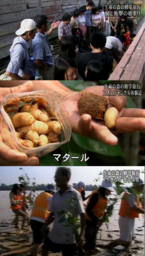 本日の宇宙船地球号高校の修学旅行でマレーシアの田舎に一週間泊まりに行く内容でしたが、一言、うらやましいハワイに行ったり、中国に行ったりと国内をいろいろ回ったりとありますが、正直、二泊三日とかで詰め込み式にバタバタ回るといったもので(もしかして、今はそのような感じではないのかな?)文化や伝統にふれるよりも、いかに短時間で各要所にたどり着けるのかといった旅が多いように思えますが、今回のこちらは大人になってもなかなか出来ない宝物のような修学旅行に思えました。用意された出来合いのステージで楽しむのではなく、現地の本物を体験出来るとは・・・・。やるね、広島工業大付属広島高校!その中でも、強烈な体験は、やはり食事でしょう。普段、食材としてブロックになったお肉しかみたことのない高校生が自分の手で生き物をつぶす。普段と同じ肉なのにスーパーのお肉を食べるときには感じない血の味。食品という物が、商品ではないことに実感。生き物に対しての食罪で初めて感じるときなんでしょ。一度でもその体験をしておけば、食に対する意識が180度ひっくりかえりますよね。(最初は吐きそうになりますけど・・・)現地の自然に触れて楽しむ一方、マレーシアの田舎にまで押し寄せる環境問題、そして豊かさへのあこがれ。物質社会から迷い込んだ日本人には自然がある以上の豊かさは無いといえますが、自然が当たり前の方に便利さを捨ててまでその自然を守って欲しいと言うことがいえない苦悩。難しい問題ですが、それでも社会に出る前にそのような問題にふれて、なんとなく意識がはれるようになることが大事なんですよね。うるるん滞在記じゃないけど、お金じゃ買えないこんな旅してみたいなぁ・・・