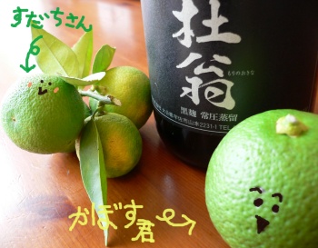 お客さんから「かぼす」と「すだち」いただきました♪ありがとうございます。さっそく恒例の落書きしてみました。うん、かわいい( *´∀`)ノ.☆.せっかくいただきましたので、今晩の晩酌はかぼすということで大分の麦焼酎「杜翁」のかぼす割に決定。楽しみだなぁ(人´∀`).☆