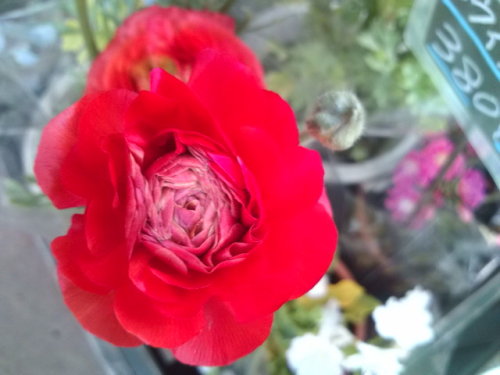 講演会の帰りがけ、バスを待ってる間に花屋さんで見かけたラナンキュラス、ボロニア、プリムラジュリアン(八重)、初恋草です。買おうかと迷ったけど、写真だけ撮らせてもらってしまいました。初恋草は以前買って、寒さに負けて枯れてしまったしね・・・