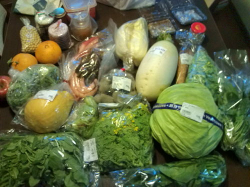 長女マッキーが、滋賀から送ってきたものです。匂いの元はキムチだったのかな?本人も一緒に帰ってきたけどね。野菜が一杯! また実家にも半分?送りました。「正子さんの手作りおはぎ」も2パック入っていて、私の好きな胡麻もありました! 夕食に食べてしまいました。 味噌汁も、送られてきたつる菜を入れました。つぼ鯛みりん漬け焼。豚肉のスタミナ炒め。マッキーが、顔を描いた大根・・・マッキーが送ってくれたシュウマイ。マッキーの畑で採れたほうれん草のおひたし。私と主人が滋賀に行ったとき、ネットを買って畑にかぶせたのですよね。池袋のパン屋で私が朝食用に買ってきたパン。荷物の片付けしてる時、お腹が空いたと言ってたから、もう食べてしまいました。明日、卒業式だから、髪をセットしてもらうと美容院に出かけてしまったから、食べておいて良かったかな?大根柚子風味。おまけですが、信楽焼の狸も持ち帰ってきました!