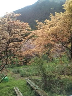 白丸のアースガーデンでランチした後、奥多摩駅に向かって歩きました。モミジと桜が一緒にあって、 秋と春が混ざってるみたい。八重の雪柳かな?小さいバラのよう。石楠花、オオイヌノフグリ、名前が分からないけど、小さい水色の花。タンポポ、カラスノエンドウも見かけました。