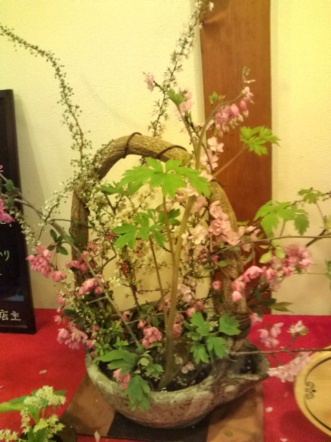 鳩ノ巣渓谷に家族で行きました。川の向こうに1時間に2本という電車がちょうど来たのが見えたので、「すごい偶然!」と言ってたら、息子カズが「上下あるんだから、一時間に4本だよ」と言うので、ちょっとがっかり・・・川には色とりどりのカヌー。 松ぼっくり、 八重桜。誰かが作ったのかタンポポの指輪が置いてありました。川に面したアースガーデンという店でランチすることに。混んでて待たされましたが、ゴールデンウィークでは仕方ないか、、、東京で唯一の造り酒屋、澤乃井の樽を花器に生けてありました。名前は分からないけど、濃いピンクの可愛い花。
