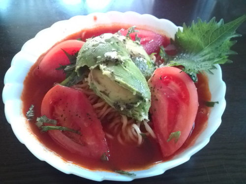 午前中は、卓球の練習に原付で行って、汗かいたので、帰ってきて、のんびりお風呂に入っていたら、遅くなってしまった。免許取立ての長女マッキーが、運転したいというので、近所のスーパーまで買い物に出かけ、冷たいトマトのラーメンを買ってきました。うちにあったトマトとアボガドと紫蘇をのせてマッキーが作りました。バジル&オリーブのドレッシングも合ってて美味しかったです。コンビニに原付で行って、買ってきたサキイカとアイス。座席の下に入りきれる分しか買いません・・・マッキーは、ハンドルにぶら下げる手もあるというけど、原付初心者の私には怖い・・・マッキー彼が研修していた滋賀の鮎河の生酒。研修が終わって東京に帰ってきた後、また桜祭りで行ってきたらしい。