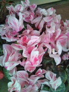 買い物に行く前に寄ったクリーニング屋さんの花です。混んでて、待ってる間に撮りました。シクラメン。ラン?君子蘭。君子蘭が咲き誇ってますね。登り藤?待ってる間も目を楽しませてくれます。