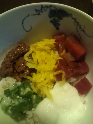 今夜の夕食は、スタミナばくだん丼。湯豆腐。主人は熱燗で晩酌。今日は私が仕事で、義母が来ないから、送り迎えをしなくて済むのです。次女ミンミが送り迎えしてくれたりしてたけど、バイト(整骨院)が決まって、今日から早速働いてるから、送り迎えや、夕食作りは頼めなくなるなあ・・・もやしとワカメのユカリ和え。 白菜と玉ねぎ、にんじんの味噌汁。まあ、この頃は私が夕食作っていたから、それほど変わらないけど、いざという時に頼めないのが辛いなあ・・・長女マッキーも滋賀や岩手県宮古市から帰ってきたけど、やはりバイトするというので、あてにはなりません・・・夕食も、主人や義母と食べるようかな・・・ミンミは、土日以外の平日は毎日バイトするらしい。指圧の専門学校に通ってるから、整骨院では勉強にもなるようです。入間おやこ劇場のSさんの息子さんが働いてる整骨院を紹介してもらったのです。ありがとうございました!