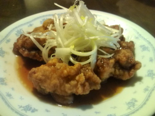 今夜の夕食は、油淋鶏(ユーリンチィ)。鶏の唐揚げにタレをかけて白髪葱。焼ビーフン。たたき胡瓜。具だくさん味噌汁。昨夜の味噌汁に新玉ねぎを足しました。玉ねぎから茎が伸びた感じです・・・玉ねぎと葱のあいの子?長女マッキーが滋賀から送ってくれた野菜です。マッキーは、もううちに帰ってきてて、休学してるけど、学生証は大学に取りに行きました。国民年金の免除申請に必要だし、定期も買えるからね。