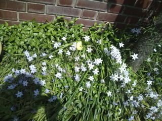 うちの花です。花ニラ、水仙。水仙。シャガ。ボンザマーガレットの蕾。勿忘草。ブルークローバー。香りフロックス。チューリップ・アイスクリーム。