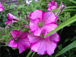 また、うちの花です。ペチュニア・ほお紅。ペチュニア・マジックパープル。ボンザマーガレット。ベロニカ・ハイファイブ。小輪ガーデンダリア。ペンステモン・プレーリートワイライト。ゲラニューム・ブレッシングタートル。モミジ葉ゼラニウムの蕾。ゼラニウム・ブラックベルベット。ペレニアルフラックスブルー。香りフロックス。ローズ・ミミエデン。千鳥草。ギリア・レプタンサブルー。