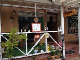 主人が映画「ファミリーツリー」を観るというので、私も一緒に行きました。その前に映画館近くのジョンソンタウンでランチ。そういえば、以前「猿の惑星」を観に行った時も、ジョンソンタウンでカレー食べたかな?11:30にならないと飲食店が開かないので、それまでジョンソンタウン内をブラブラ。米軍ジョンソン基地の時の米軍ハウスや、それを模して作った平成ハウスなどが立ち並ぶ一角です。お洒落なお店や住宅など、町並みが好きなのですよね。好きな雑貨屋MIMI。今日はお休みでした・・・芸術的・・・