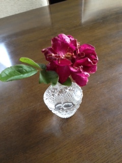 ローズ・ミミエデンの蕾がどんどん落ちてしまい、もったいないので、ドライにして飾りました。グランドピアノ形のケースに挿してみました。