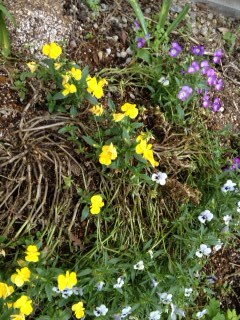 トリミングしてみました。接写はアップし過ぎるから、トリミングの方が見やすいかな?オキザリス。ビオラ。イブキジャコウソウ。セリンセ・プライドオブジブラルタル。