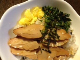 今日は午後、また卓球の練習に行ったのですが、また雷雨がありました。帰りは雨だけだったけど、自転車だったので、フード被りながらも濡れて帰ってきました。主人が車を使ってたのだけど、もう帰っていたから、迎えに来てもらえばよかったかな?卓球の人たちも送ろうかと言ってくれたけど、遠慮してしまったのですよね。お風呂に入り、夕食の支度をして、パソコンしてたら、眠くなってきてしまった。ちょっと仮眠と寝てしまいました。1時間も寝てないけど、スッキリ! 今夜の夕食は鶏の照り焼き丼。鶏の照り焼きに卵、カブのごま油いためを載せました。長女マッキーが「すみだ青空市ヤッチャバ」を手伝ってもらったカブ。葉も捨てずにごま油で炒め、そばつゆで味付けし、すりごまをふりかけました。カブはポン酢で即席漬け。おかず汁。白菜、人参、玉ねぎ、油揚げと具沢山です。サニーレタスもヤッチャバでもらったもの。肉厚で美味しかったです。あとはトマトと貝割れ大根のサラダ。またこの卵もヤッチャバ。平飼いの鶏の卵なのですが、飼料に着色剤入りのものを与えてないので、あまり黄色が濃くないのだそう。マッキーが卵そのものを味わいたいと卵かけごはんにしました。ごま油とめんつゆ、一味唐辛子と、先ほどのカブの葉のゴマ炒めをのせました。白身だけでご飯をかき混ぜて、黄身だけ後からのせ、黄身だけの味も味わうそうです。ほんのり甘い感じ。今日は、ヨシケイの食材だけでなく、ヤッチャバの野菜と卵も使いましたね。まだ野菜などあるので、これからまた使います。義母も来て食べていったのですが、雷雨のため、主人も送るのを躊躇したから、少し遅くまでうちに居ました。まあ、いつもテレビを見てから帰るのでそれほど変わらないかな?次女ミンミが遅いので、大丈夫かな?昨日は雷雨に雹も降って、今日はこちらは雷雨だけだけど、これからまた、ひどくなるみたいだから心配です。