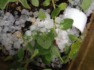 今日、午後卓球に行ってる間に、雷雨と雹(ひょう)が降りました。体育館に、雷や、雹の降る音など轟音が響き渡り、怖いほどでした。うちに帰ったら、まだプランターなどに雹が残ってました。これはオレガノのプランターです。花はそれほど被害はなかったのですが、ペチュニア・マジックパープルが酷かったですね・・・花びらが引きちぎられて、落ちてました。ローズ・ミミエデンの蕾がまた3個落ちてて、さびしくなってしまいました。また、長女マッキーがプランターに植えたサニーレタスとサンチェも雹でちぎられて、芯だけ残ってる始末・・・茂ってるので収穫しようとは思っていたのですが、この機会に収穫しました。落ちてしまった葉も拾って。結構な量になりましたね。この倍くらいあります。