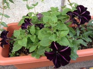 また、うちの花です。八重インパチェンス・カリフォルニアローズ。インパチェンスの後ろの銀色っぽい葉は、ヒューケラです。手前:ヒューケラ、後ろ:ビオラ。後ろ:ペチュニア・マジックパープル、手前:ペチュニア・ショックウェーブデニム。挿し芽で増やしたものです。鉢に植えて、庭の茂みに置きました。羽衣ジャスミンの蕾。パンジー。カレンジュラ・冬知らず。オキザリス。別のオキザリス。