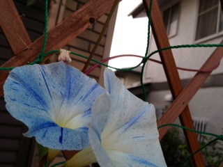 うちの花。西洋朝顔フライングソーサー。白と青が入り混じってます。 西洋朝顔アーリーへブンリーブルー。百日紅(さるすべり)。