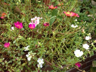 またまた、うちの花。ポーチュラカ。宿根バーベナ・ピンクパフェ。ポーチュラカ。ペチュニア・舞桜。ブラックペチュニア・ピンストライプ。八重ポーチュラカ。水色は、るりまつり。ピンクは、ポーチュラカ。水色は、サマーロベリア・ブルーアイ。ピンクは、ポーチュラカ。八重トルコ桔梗の蕾。ピンクは、宿根バーベナ・ピンクパフェ。カリブラコア。