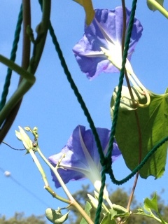 うちの花です。西洋朝顔アーリーヘブンリーブルー。青に赤が混じってます。西洋朝顔フライングソーサー。白と青が入り混じってます。チコリ。デルフィニウム・ミントブルー。ペンタス・パニックタワー。バーベナ。