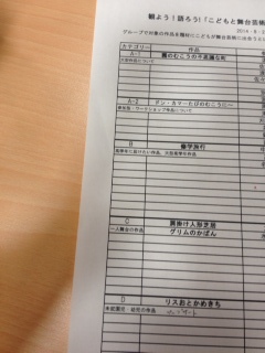 入間おやこ劇場の例会部員として、埼玉県のおやこ・こども劇場の観よう!語ろう!「こどもと舞台芸術」交流会に参加してきました。私は、劇「修学旅行」を観た人たちのグループ。高学年に届けたい作品、大型高学年作品について話し合いました。やはり良質で、感動できる作品。「修学旅行」について言えば、笑いの中にも戦争などについて考えさせられる作品。子ども達に伝えたいけど、構えられて観に来ないのは困るしね。 今年は、昼食持参で、午後も情報交換会。Mさんの車に乗せてきてもらったのですが、途中、コンビニでお弁当を買いました。阿波尾鶏の鶏ごはん。「阿波踊り」をもじってるのかと思ってしまった。脂肪を消費しやすくするヘルシア緑茶。脂肪が減るしあ?なんて、オヤジギャグですね・・・いろんな作品の情報を聞けて、参考になりました。うちに帰ったら、アップルパイがあったので、おやつに食べてしまいました。これでは減らないね・・・