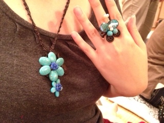 入間おやこ劇場の野田ブロック有志で、地域の納涼祭に出店したのですが、今夜は、その打ち上げです。近くの大子という鰯料理のお店でやりました。料理はいろいろあったので、写さなかったのですが、アクセサリーなど撮らせてもらいました。Oさんのアクセサリー。ネックレスと指輪は、ペアではないけど、同じ池袋のサンシャインビルのお店で買ったから雰囲気が似てますよね。指輪は、蝶のデザインで可愛い。Sさんのアクセサリーも、写させてもらいました。Sさんのは、ペルー旅行の時、ナスカの空港で買ったものだそう。素敵ですよね。Oさんが、切った切り絵。口は別に切ったそうですが・・・切り絵の表と裏。カッターで切ったそうですが、器用ですよね。入間おやこ劇場の総会資料の「例会のまとめ」作成をMさんと打ち合わせ。Mさんのお父さんの具合が悪いので、私が引き継いでやります。また、例会の個人アンケートも集めたけど、その場で書いてる人も。なんて、私はまだ書いてないから人のことは言えないけど。29日が情報交換会だから、それまでに見たい例会を決めて欲しいのだけどね。私も26日のチャリティコンサートが終わったら、じっくり選ぼう。26日は入間おやこ劇場の夏祭り。私はコンサートと重なってるから出られないけど、Kさんは、かかし作りをやるらしい。また、9月9日は、太鼓フェスティバルで冷やしキュウリ売りも。私はまた、卓球の試合で出られないけどね・・・10月14日の総会前に、ブロック委員や運営委員を決めないといけないから、ブロック会を開かないと。今年度は、私がブロック委員でしたが、来年度は他の人にやってもらいたいなあ。9月中の土日にブロック会を開くため、サークル長に出欠を聞かないとね。