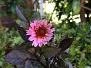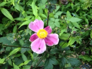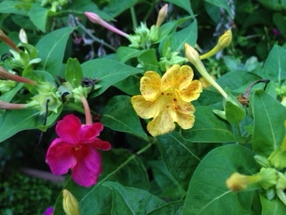 うちの花。オシロイバナ。ポーチュラカ。宿根バーベナ・ピンクパフェ。クレマチスの種。クレマチスの葉を食べてる虫・・・萩。チャイニーズハット。