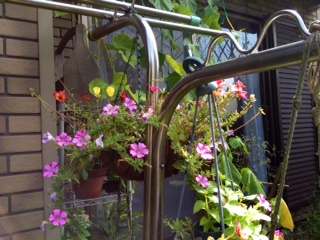 また、うちの花。八重ポーチュラカ。iphoneでトリミングしたはずなのに、メールで送るときは、元の写真のまま・・・このごろフリーズしたりと調子が悪い。最初から不具合があったけど、長女マッキーにiphoneはそんなものだと言われてあきらめました。docomoの携帯では、そんなことなかったんだけどね・・・写真はiphoneの方がきれいだから仕方ないかな・・・ピンクに筋は、ペチュニア・ほお紅。萩。青は、アメリカンブルー。ピンクは、ポーチュラカ。チャイニーズハット。ペチュニア・ほお紅。松葉菊が咲かない・・・挿し芽したペチュニアの方が咲きます。黒白は、ブラックペチュニア・ピンストライプ。青は、アメリカンブルー。ピンクは、ポーチュラカ。アメリカンブルー。ブラックペチュニア・ピンストライプ。ベゴニア・ダブレット。