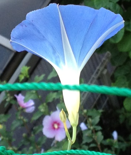 またまたまた、うちの花。ツルバギア・ビオラセア。青は、るりまつり。ピンクは、ブーゲンビリア。西洋朝顔アーリーへブンリーブルー。青に赤が混じってます。西洋朝顔フライングソーサー。青に白が混じってます。