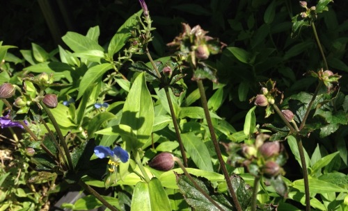 また、うちの花です。チャイニーズハット。アメリカンブルー。ツルバキア・ビオラセアが咲き出しました。トレニア。がく紫陽花も咲き出しました。メドーセージ。ゲラニウム・ブレッシングタートル。秋明菊の蕾。西洋朝顔アーリーへブンリーブルー。