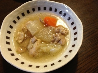 今日は勤務日で、ちょっと残業?してから帰宅。夕食は、チキンのポトフ。ベーコン・じゃがいも・アスパラ炒め。小松菜の胡麻和え。カボチャの浅漬け。長女マッキーの春日のお土産。半年間、研修していた滋賀の春日に、半年ぶりに遊びに行ったら、 皆さん歓迎してくれたそうで、感激していました。第二の故郷みたい。 湯豆腐。主人の晩酌のお供。義母が来ない日は呑むのです。ニラ玉汁。春日土産のプチトマト。エリンギの塩胡椒焼き。蒸かしいも。