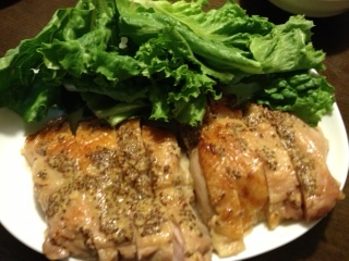 今日は、ランチしてからカラオケに行ってきたので、あまりお腹は空いてなかったけど、長女マッキーが作ってくれた夕食は美味しくて、結構食べてしまった。夕食は、マスタードチキン。ワカメと卵の白身の味噌汁。ニラ玉に黄身だけ使ったから、その残りの白身は味噌汁に使ったそう。ぶりの刺身。かつおみたいだけど、脂のノリが違いますね。スーパーで本日のおすすめと放送していたのに釣られて買ってしまったけど、当たりでした。野菜炒め。ニンジン・ポテト・玉ねぎ、ほうれん草。茄子の梅酢漬け。オムレツ。カボチャやニンジンなどが入ってて美味しかった。葱も合います。マッキーはいろいろオリジナルで作るけど上手いのです。
